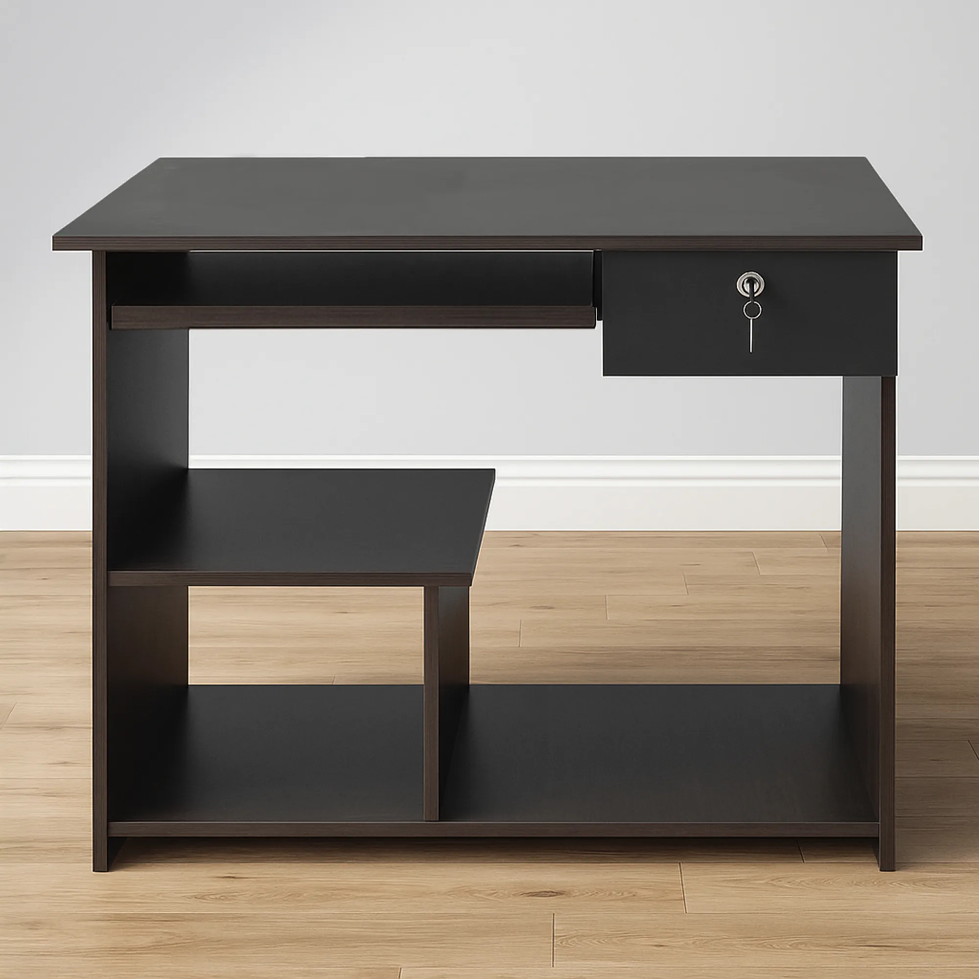 Finished in a sophisticated dark wenge, this study table adds a touch of modern elegance to any space. Its intelligent layout provides everything you need to stay organized and focused. The spacious tabletop offers ample room for your monitor or laptop, while the smooth, pull-out keyboard tray saves valuable desk space and promotes a more ergonomic typing posture.